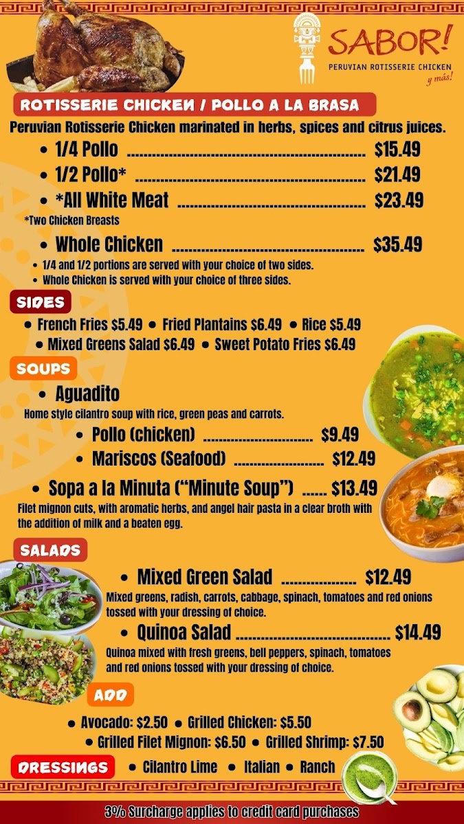 Sabor! Peruvian Rotisserie Chicken y mas! Menu