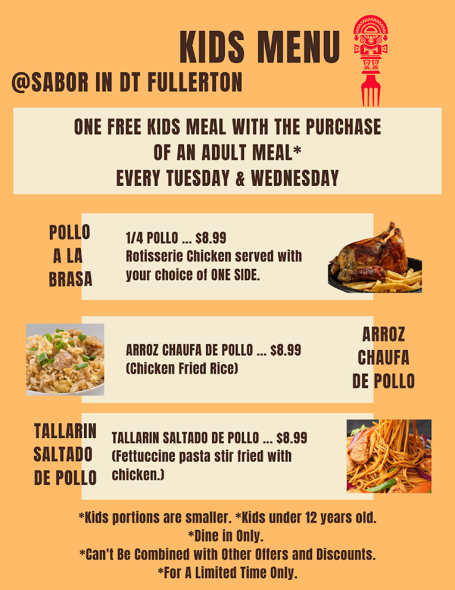 Welcome to Sabor! Peruvian Rotisserie Chicken y mas!, where tradition and flavor collide in the heart of Fullerton, CA. This gem offers a tantalizing menu that showcases the rich culinary heritage of Peru, featuring classic dishes crafted with care and authenticity.